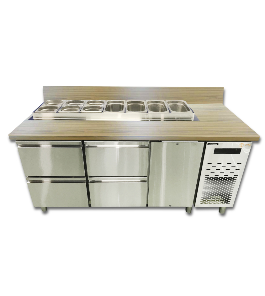 檯面設計份數盆格,可用於食品配料保存,在使用上更方便
